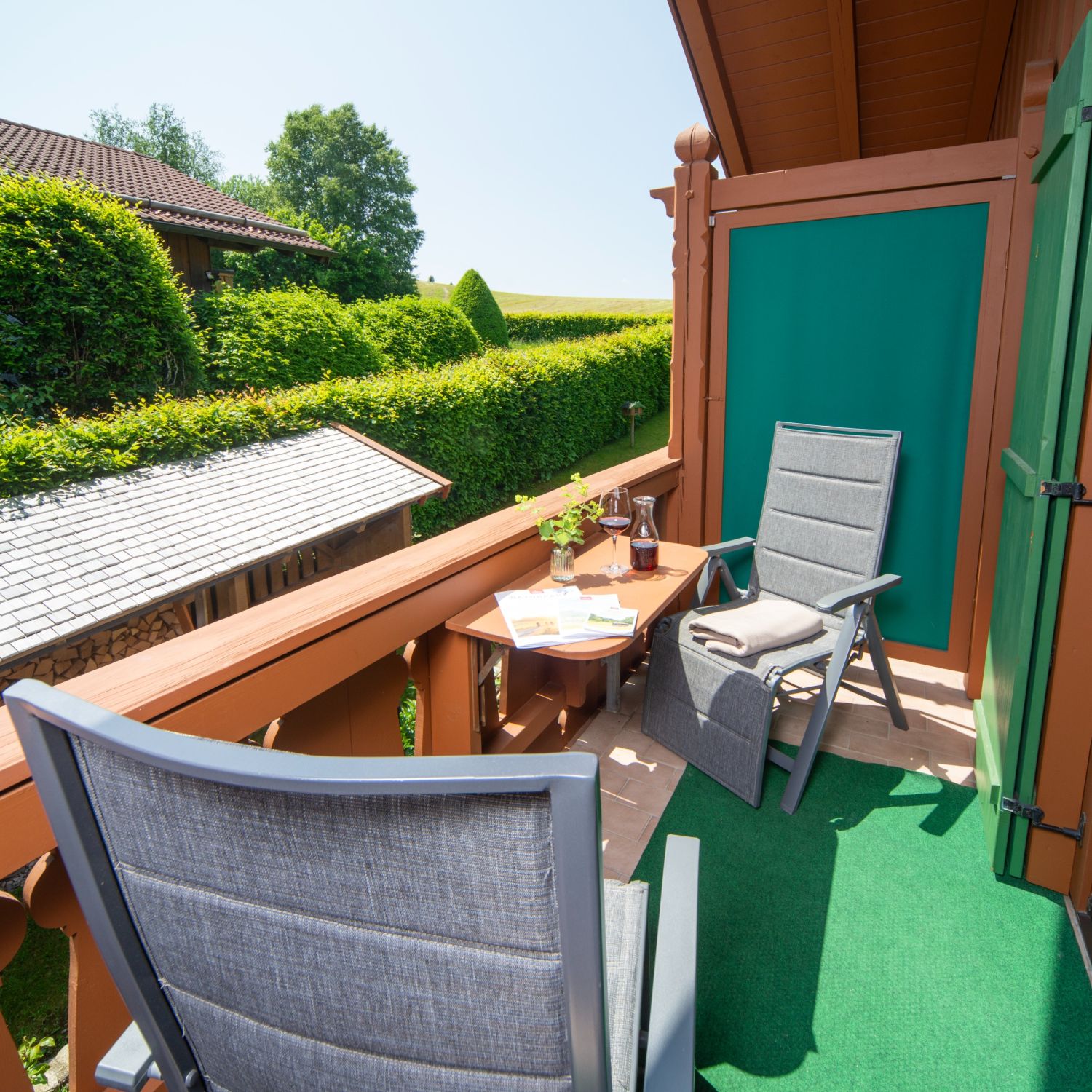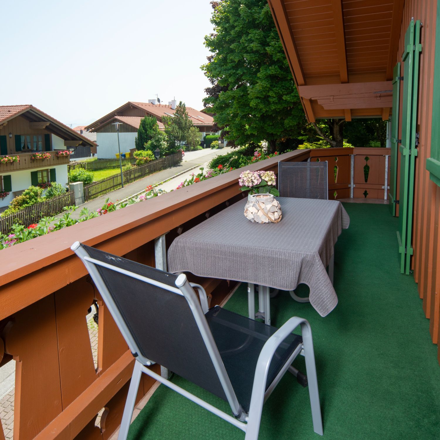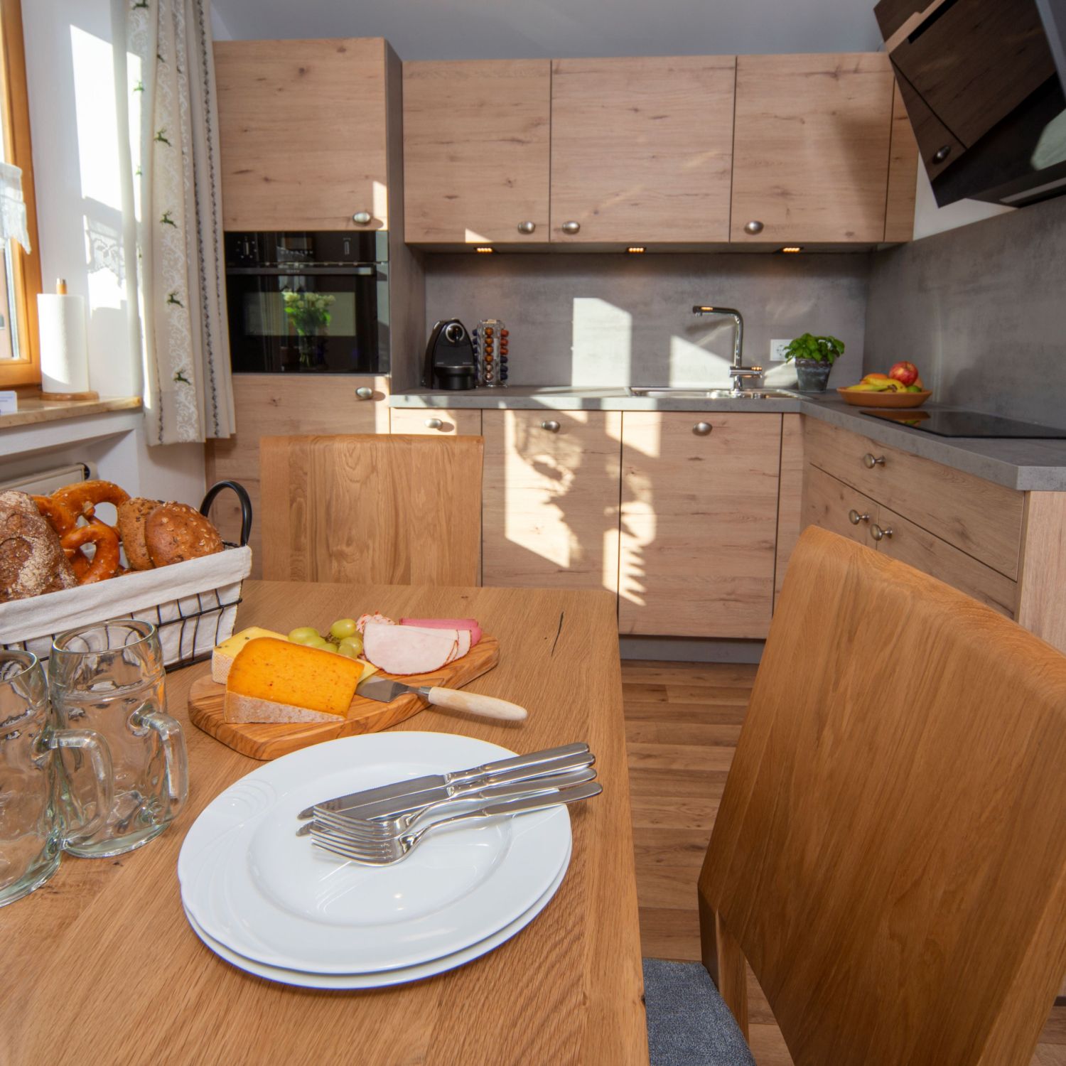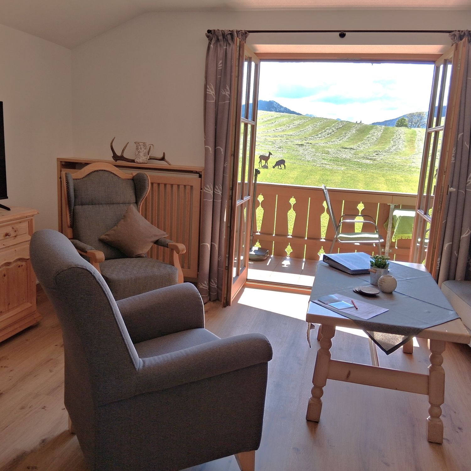 Ein sonniges Frühstück auf den Balkonen mit Blick ins Voralpenland bietet beste Voraussetzungen, um Pläne für den Urlaubstag zu schmieden.